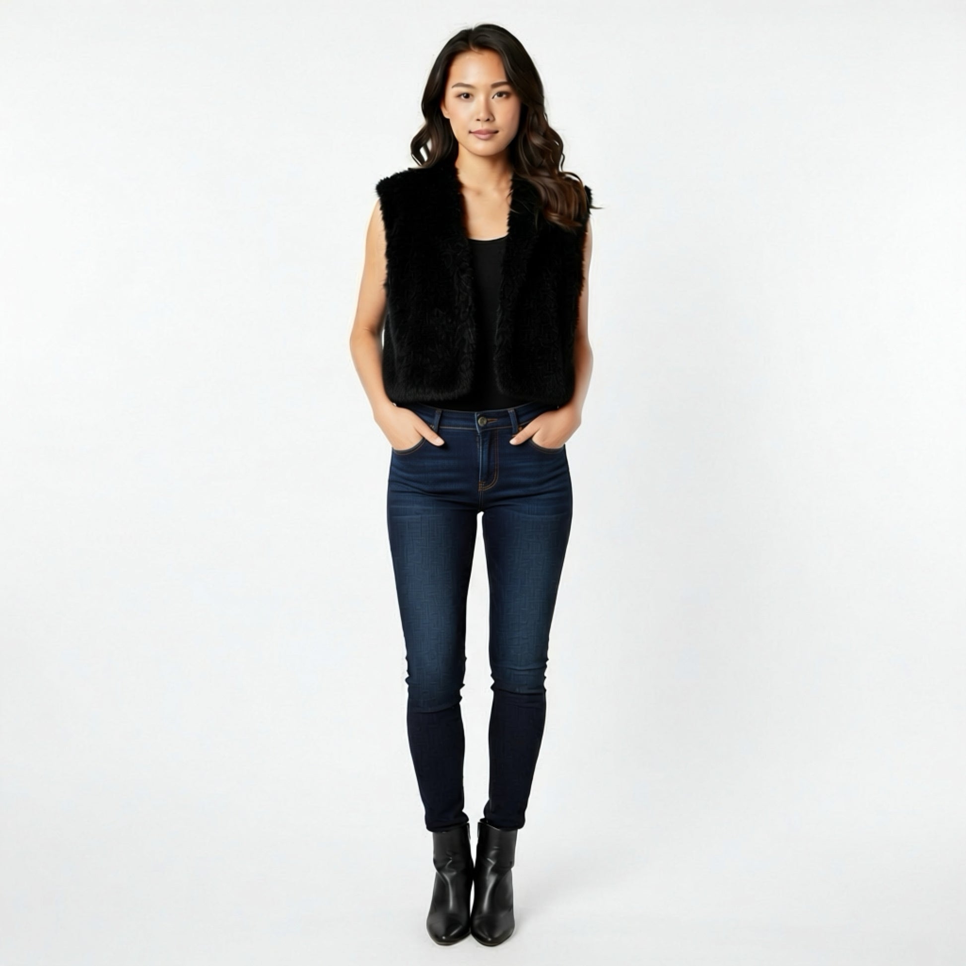 Diese edle Fellweste vereint zeitloses Design mit maximalem Tragekomfort. Ob lässig über einem Pullover, elegant zum Kleid oder als kuschelige Ergänzung an kühlen Tagen – die Weste ist ein echtes Kombi-Wunder.
