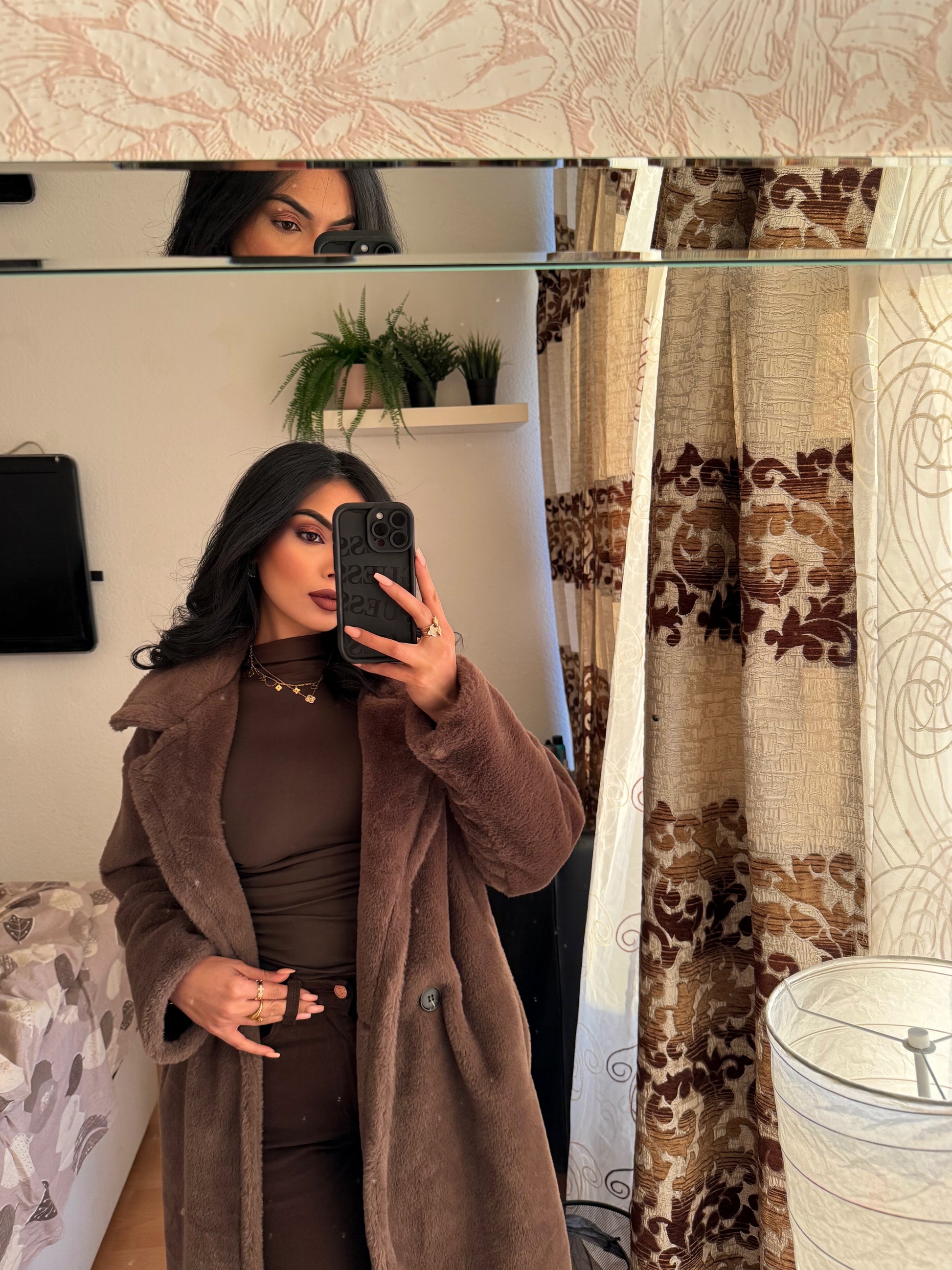 Luxus trifft auf zeitlose Eleganz – dieser lange Fellmantel ist ein echtes Statement-Piece. Mit seiner fließenden Silhouette und der weichen, voluminösen Struktur verleiht er jedem Look einen Hauch von Glamour. Der lange Schnitt schmeichelt der Figur, hält warm und sorgt gleichzeitig für einen auffallend stilvollen Auftritt.